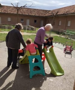 Cet espace extérieur constitue un véritable lieu d’éveil où les enfants peuvent découvrir la nature, développer leur autonomie, partager des moments conviviaux avec les résidents et profiter pleinement des bienfaits du grand air.